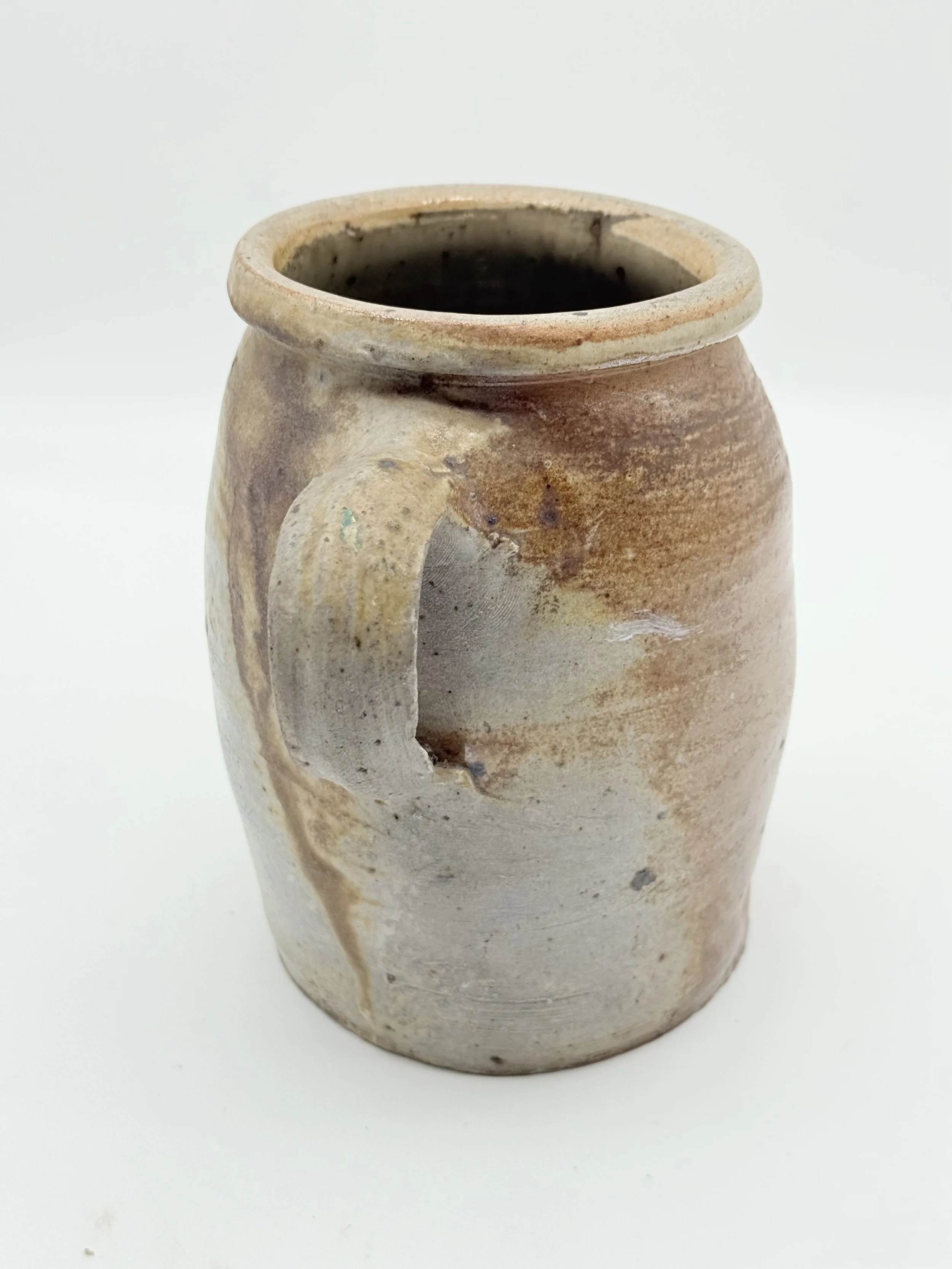 This charming vintage French pot exudes the rustic elegance of provincial life. Its classic, bulbous form and hand-thrown construction reflect the simplicity and beauty of rural craftsmanship. The pot features a warm, earthy glaze with subtle variations and imperfections that speak to its nature.